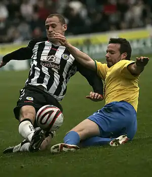 Despite these bans, in 16th-century Perth apprentices progressing to become master craftsmen traditionally had to pay for a banquet and hold a football match.[3] Several ball games which appear to predate the modern era exist in modern Scotland. The Kirkwall Ba Game is an example.