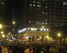 In the 1920s, the Drake Hotel Company undertook some financing arrangements which included extending their debt to construct the Drake Hotel. They used the Blackstone Hotel as collateral for one loan in 1927.[9] The Wall Street Crash of 1929 rippled into the hotel industry, leaving the Chicago Title and Trust Company with 30 Chicago hotels in receivership and causing the Drakes to default in 1932.[9] The hotel ended up belonging to Metropolitan Life, which held the mortgage. MetLife leased the Blackstone to hotelier Arnold Kirkeby in 1936, and Kirkeby bought the hotel outright in 1941.[10] Kirkeby sold the hotel to Sheraton Hotels in 1954 and it was renamed the Sheraton-Blackstone Hotel. The hotel endured troubles in the late 1960s, as the neighborhood surrounding it declined,[11] and Sheraton finally sold the property to local hotelier Mark Friedman on September 12, 1973, for $5 million[12] and the hotel became the Blackstone Hotel again. In 1995, the Blackstone was sold to the Maharishi Mahesh Yogi.[13] 1995 was also the end of Jazz Showcase's 14-year run at the hotel.[14]