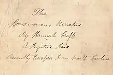 - Hannah Crafts, The Bondwoman's Narrative, original manuscript, Beinecke Rare Book Library, Yale University.