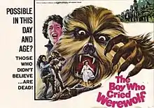 The Boy Who Cried Werewolf is a 1973 Technicolor horror film directed by Nathan H. Juran.[1] The film stars Kerwin Mathews in the final film he and Juran made after their earlier work, which included The 7th Voyage of Sinbad.[2] In this thriller, a boy visits his father in a secluded cabin; the father is attacked by a werewolf and then becomes one himself. The boy constantly tries to tell others, but no one will believe him.[3]