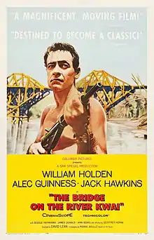 The Bridge on the River Kwai is a 1957 epic war film directed by David Lean and based on the 1952 novel written by Pierre Boulle. Although the film uses the historical setting of the construction of the Burma Railway in 1942–1943, the plot and characters of Boulle's novel and the screenplay are almost entirely fictional.[3] The cast includes William Holden, Alec Guinness, Jack Hawkins, and Sessue Hayakawa.