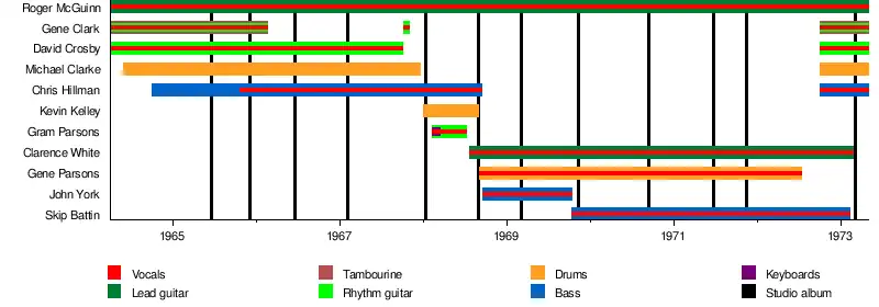 | Past members | Roger McGuinn Gene Clark David Crosby Michael Clarke Chris Hillman Kevin Kelley Gram Parsons Clarence White Gene Parsons John York Skip Battin |