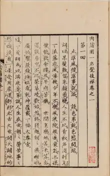 The scholars Chun-shu Chang and Shelley Hsueh-lun Chang discuss the problems of authorship.[3] They point out that the attribution to Li did not come until 1715, 35 years after Li's death, and was offered with no evidence, and no new evidence was added in the following years of the Qing dynasty. They further point out that in modern times Lu Xun suggested that the novel had a spirit and style akin to Li's, but he did not elaborate. The Changs acknowledge Patrick Hanan's conclusion that "so distinctive is his brand of fiction that although the novel has never actually been proved to be by Li Yu, one has only to read it alongside his stories to feel the truth of the attribution." However, they themselves argue that "we cannot conclude that Li Yu was the author of Prayer Mat of Flesh.[4] Andre Levy in the Indiana Companion to Traditional Chinese Literature says that the author is "probably" Li Yu.[5] The literary historians Wilt Idema and Lloyd Haft simply say Li is "often considered" to be the author.[6]