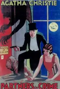 Partners in Crime is a short story collection by British writer Agatha Christie, first published by Dodd, Mead and Company in the US in 1929[1][2] and in the UK by William Collins, Sons on 16 September of the same year.[3] The US edition retailed at $2.00[2] and the UK edition at seven shillings and sixpence (7/6).[4] All of the stories in the collection had previously been published in magazines (see First publication of stories below) and feature her detectives Tommy and Tuppence Beresford, first introduced in The Secret Adversary (1922).