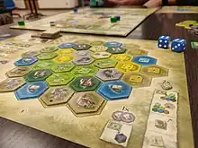 The Castles of Burgundy is a board game for two to four players, set in Medieval Burgundy. It was designed by Stefan Feld and illustrated by Julien Delval and Harald Lieske, and was published in 2011 by Ravensburger/alea.[1] It is considered a classic of the Eurogame genre,[2][3] and is cited as one of the most influential board games of the last decade.[4] It uses dice rolling and dice placement, a modular setup, and set collection as its mechanics.[5] The dice and the ability to change them give players a wide range of options.[6]