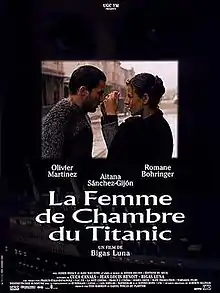 The Chambermaid on the Titanic (Spanish: La camarera del Titanic, French: La Femme de chambre du Titanic, Italian: L'immagine del desiderio) is a 1997 French-Italian-Spanish drama film directed by Bigas Luna, starring Oliver Martinez, Romane Bohringer and Aitana Sánchez-Gijón. It is based on the 1991 novel La Femme de chambre du Titanic by Didier Decoin.[1] The film is known variously by its French title, La Femme de chambre du Titanic, and also by the shortened English title The Chambermaid, which was adopted in late August 1998[2] to avoid the impression that it was trying to cash in on the success of James Cameron's popular film, Titanic, which was released the year before The Chambermaid on the Titanic made its US debut.[3]