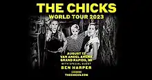 The Chicks Tour / 2023 World Tour is the sixth and current headlining concert tour from American country music trio The Chicks and their first under their new name. It began on June 14, 2022, in Maryland Heights, Missouri and initially concluded in Austin, Texas. Following this, the group played their first ever Las Vegas residency, The Chicks: Six Nights in Vegas in May 2023, at the Zappos Theater. The 2023 portion of the tour began on June 20, 2023, in Oslo, Norway and is scheduled to finish on October 30, 2023, in Christchurch, New Zealand.