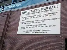 The Citadel Bulldogs baseball team represents The Citadel in college baseball. They are classified as NCAA Division I and play in the Southern Conference. The Bulldogs are led by Tony Skole, who began his first season in 2018.[2][3] They made their one appearance in the College World Series in 1990. They are the first and through 2022 only military school to appear in the College World Series. The Citadel has claimed eight Southern Conference baseball tournament titles and produced seven major league players.