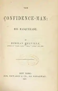 The Confidence-Man: His Masquerade, first published in New York on April Fool's Day 1857, is the ninth book and final novel by American writer Herman Melville. The book was published on the exact day of the novel's setting.