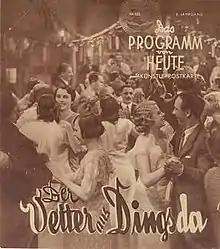 The Cousin from Nowhere (German: Der Vetter aus Dingsda) is a 1934 German operetta film directed by Georg Zoch and starring Lien Deyers, Lizzi Holzschuh and Walter von Lennep. It is based on the 1921 operetta The Cousin from Nowhere composed by Eduard Künneke. It was later turned into a 1953 film of the same title.[1]