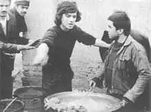 Forouzan's portrayal, either from the viewpoint of the critics who did not expect an actress from the commercial cinema to perform in a thoughtful film of Mehrjui's or from the public's point of view was interesting and controversial. About that, Entezami says: "When we went for shooting in Mashhad, an uproar started because of Forouzan's presence; and they were forced to escort her by a car to her residence after shooting. It was said that Mehrjui had picked her in order to guarantee the box office; whereas the truth was different."[17] In an interview of Iraj Saberi and Mehrjui:
