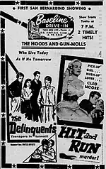 The Delinquents is a 1957 American drama film written, produced, and directed by Robert Altman.[1] As the directorial debut of Altman, he filmed it in his hometown of Kansas City, Missouri during the summer of 1956 on a $63,000 budget. It is not only the first film Altman directed, but also the first to star Tom Laughlin.