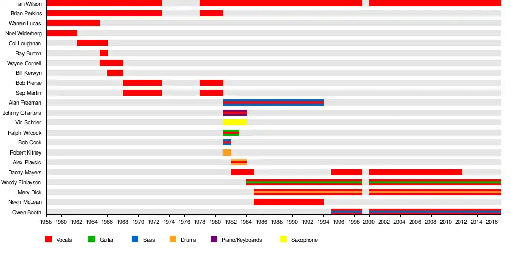 - Ian 'Peewee' Wilson – vocals (1958–1973, 1978–2016)