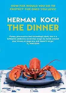 By 2012 the book had already sold a million copies in Europe.[4] Arifa Akbar (The Independent) noted that the "sly" and "riveting" novel seems to head in one direction, then "is galloping down another, unexpected path" and finds that it "may thrill, chill or cheat", whereby its "spectacular style triumphs over substance".[4] The book was twice reviewed by The New York Times. Janet Maslin found the morality of the story "really sickening", none of the four characters at the dinner is "really sane" and compared it negatively to Gillian Flynn’s Gone Girl where the characters are vicious but also sympathetic.[2] Claire Messud noted a "bracing nastiness" in the book as more and more secrets are disclosed.[5] She opines that The Dinner is, to some extent, "attuned to a distinctly European society, one simultaneously more ostentatious in its apparent "civilization" and more ashamed of its underlying savagery".[5] Alex Preston (The Guardian) indicated that the book is about the nature of evil and found it to be a well-paced and entertaining novel that shows "brutal violent creatures" under "the thin facades of decency and manners."[1] Lisa Zeidner (The Washington Post) recognized black humor in the novel as in the unlikely choice of a public restaurant for the delicate discussion. She opined that Koch illustrates the absurdities of our privileged daily lives and pokes fun at "Dutch mediocrity".