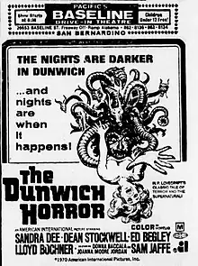 The Dunwich Horror is a 1970 American supernatural horror film directed by Daniel Haller, and starring Sandra Dee, Dean Stockwell, and Ed Begley. A loose adaptation of the short story of the same name by H.P. Lovecraft, the film concerns a young female graduate student who is targeted by a man attempting to use her in an occult ritual taken from the Necronomicon. The screenplay was co-written by Curtis Hanson, while Roger Corman served as an executive producer on the film.