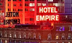 The red neon sign that shines into Kramer’s apartment in an episode of Seinfeld parodies, and was inspired by, the Empire Hotel's sign.