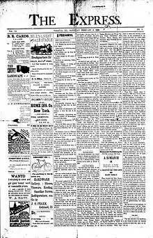 The Express was a weekly newspaper published in the village of Tallula, Menard County, Illinois during the late 19th century. The paper contained local news as well as entertainment in the form of poems and short stories. It also included advice columns and advertisements for local stores and services. The paper was succeeded by The Tallula Journal in 1897.[1][2][3]