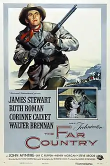 The Far Country is a 1954 American Technicolor Western film directed by Anthony Mann and starring James Stewart, Ruth Roman, Walter Brennan, John McIntire and Corinne Calvet. Written by Borden Chase, the film is about a self-minded adventurer who locks horns with an evil, corrupt judge while driving cattle to Dawson, Yukon Territory. It is one of the few Westerns to be set in Alaska—others include The Spoilers and North to Alaska -- although it was not filmed there.[4] This was the fourth Western film collaboration between Anthony Mann and James Stewart. The supporting cast features Jay C. Flippen, Harry Morgan, Steve Brodie, Robert J. Wilke, Chubby Johnson, Royal Dano and Jack Elam.