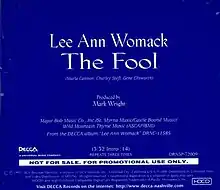 "The Fool" is a song written by Marla Cannon-Goodman, Gene Ellsworth and Charlie Stefl, and recorded by American country music artist Lee Ann Womack. It was released in May 1997 as the second single from her eponymous debut album. The song peaked at number 2 on the U.S. Billboard Hot Country Singles & Tracks (now Hot Country Songs) chart, her first of four songs to just miss the top spot.