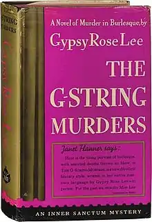 The G-String Murders is a 1941 detective novel written by American burlesque performer Gypsy Rose Lee. There have been claims made that the novel was written by mystery writer Craig Rice,[1] but others have suggested that there is sufficient documented evidence in the form of manuscripts and correspondence to prove Lee wrote at least a large portion, if not the whole, of the novel under the tutelage of editor/friend George Davis with some essential guidance from her good friend Rice.[2] The novel has been published under the titles Lady of Burlesque and The Strip-Tease Murders. Set in a burlesque theater, Lee casts herself as the detective who solves a set of homicides in which strippers in her troupe are found strangled with their own G-strings.