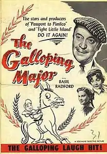 The Galloping Major is a 1951 British comedy sports film, starring Basil Radford, Jimmy Hanley and Janette Scott.[3] It also featured Sid James, Charles Hawtrey and Joyce Grenfell in supporting roles. It was directed by Henry Cornelius and made at the Riverside Studios in Hammersmith. The film's sets were designed by Norman Arnold.