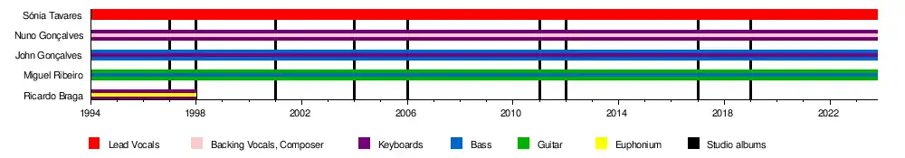The band performed its first show at the Alcobaça Monastery in July, 1995. This was followed by the Belém Cultural Centre (Lisbon) in September, 1996, and the Labirintho Bar (Porto) in November, 1996.