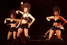 The Girlie Show was Madonna's fourth concert tour. It supported her fifth studio album Erotica, and was seen as an attempt to revive her musical career after the album and her film Body of Evidence impressed neither critics nor audiences.[1] The tour received generally positive reviews from critics and reportedly grossed US$70 million ($141.81 million in 2022 dollars)[2] from 39 concerts.[3] It was subject of controversy in several countries it visited due to its sexual imagery; in Israel, Orthodox Jews staged protests to force the cancellation of the concert. However, rallies were unsuccessful as the show went on as scheduled.[4] During the concert in Puerto Rico, she caused further controversy by rubbing the country's official flag between her legs,[5] resulting in about 30 Puerto Ricans protesting against the singer outside her house in Miami, asking for a boycott of Madonna's music until she apologized.[6]