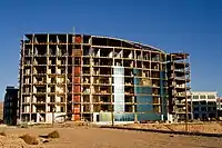 The Gramercy has 160 apartment units. A courtyard surrounds the various businesses located on the ground-floor, which includes restaurants and a fitness center. At the end of 2016, the last of the remaining office space was being prepared for incoming tenants.[30] In April 2017, the two commercial buildings were sold for $61.75 million to two real estate firms, Koll Company and Estein USA, based respectively in California and Florida.[25] The remainder of The Gramercy – including the apartment buildings and 12.6 acres of vacant property and parking lots – was sold to California-based developer Lyon Living in May 2018, for $45.75 million. The apartment units accounted for $37 million of the sale price.[31] In September 2020, Lyon Living announced plans for a six-story apartment building with 294 units, to be built on the former land of the imploded tower as well as adjacent property.[32] Construction on the apartment building, known as The Highline, began in November 2021 and is expected to conclude two years later.[33][34][35]