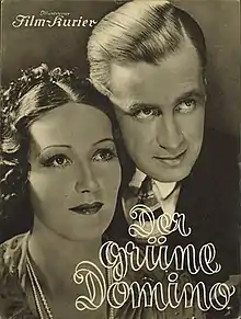 The Green Domino (German: Der grüne Domino) is a 1935 German mystery drama film directed by Herbert Selpin and starring Brigitte Horney, Karl Ludwig Diehl and Theodor Loos.[1] It was shot at the Babelsberg Studios in Berlin and on location in Bavaria around Munich and the Tegernsee. The film's sets were designed by the art directors Otto Hunte and Willy Schiller. It is based on the novel Der Fall Claasen by Erich Ebermayer. A separate French-language version Le Domino vert was also produced, directed by Selpin and Henri Decoin but featuring a different cast.[2]