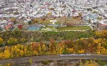 Central Avenue is one of Jersey City's 13 different neighborhood shopping districts.[3] with more than 240 businesses serving the area.[4] Pershing Field (named for General John J Pershing) is a memorial park in the center of the district that was built on a military training ground. It offers a green space, baseball fields, a swimming pool and ice-skating rink. The adjacent Jersey City Reservoir No. 3 has been preserved as a state designated wetland and park. Many stately Victorian and Edwardian homes distinguish the Heights, particularly along Summit Avenue and Sherman Place.[5]