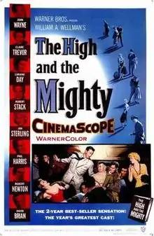The High and the Mighty is a 1954 American aviation disaster film, directed by William A. Wellman, and written by Ernest K. Gann, who also wrote the 1953 novel on which his screenplay was based.[3] Filmed in WarnerColor and CinemaScope, the film's cast was headlined by John Wayne, who was also the project's co-producer.