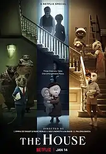 The House was first announced in January 2020, with the anthology being produced at the London unit of Nexus Studios for Netflix. Nexus had three director teams lined up to tell a tale of three distinct family generations at the same house:[1] The duo of Emma de Swaef and Marc James Roels, Niki Lindroth von Bahr, and Paloma Baeza; the directors are credited for the story of their respective segments, with Johannes Nyholm as co-writer for the second. At the 2021 Annecy Film Festival in June, the key voice cast was announced for each story.[2] In November 2021, the first images of the anthology were revealed along with the release date of 14 January 2022.[3] The first trailer was released in December 2021.[4][5]
