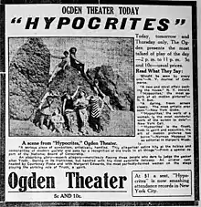 Hypocrites, also known as The Hypocrites and The Naked Truth, is a 1915 silent drama film written and directed by Lois Weber (1879–1939). The film contains several full nude scenes, and is said to include the first appearance of full frontal nudity in a non-pornographic film by an American actress (Margaret Edwards).[3] The film is regarded as anticlerical, and the nudity was justified by its religious context.
