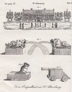Traditionally in very cold winters on the Neva ice installations were built as fortresses for the training of soldiers and for the entertainment of the residents. In the winter of 1739/40 with temperatures of −40 °C, A.D. Tatishchev, general and chief of the St. Petersburg police, before the construction of the ice palace. Cabinet Minister Artemy Volynsky issued the idea as his own. Pyotr Yeropkin was involved as an architect and Georg Wolfgang Krafft as an engineer.