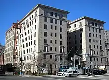 The F. H. Smith Corporation, a local real estate developer of apartment and office buildings, began construction on The Jefferson, an eight-story, 74-unit apartment building, in July 1922. Cost of construction was $900,000 ($15,734,791 in 2022 dollars), and the building was originally owned by The Jefferson Corporation.[1] The architect was Jules Henri de Sibour,[2] who designed the building in the Beaux-Arts architectural style.[3][4][5][6] The building was named for Thomas Jefferson, the former President of the United States and Founding Father.[3][7]