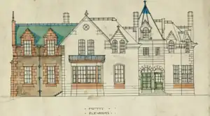 The property is unusual as it stands away from the other three Ballantyne family houses designed by F T Pilkington in Walkerburn (John Ballantyne's house Stoneyhill, David's house Sunnybrae and Henry's former home Tweedvale) but exhibits features found on the other buildings.[58][59][60][61][62] Other Ballantyne villas in the vicinity during this era included Holylee owned by Major James George Ballantyne (1837-1884), and The Firs (Horsbrugh Terrace, Innerleithen) owned by James Ballantyne (1839-1903).[63][64]