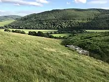 The Kirna is due south of Kirnie Law Reservoir which was built to provide hydro-electric power for Tweedvale Mill and Tweedholm Mill in Walkerburn, owned by Henry Ballantyne & Sons, Ltd. The project was conceived of and designed by Boving & Co. Ltd. (hydraulic engineers) and became operational in 1922.[70][71] This was the first working hydro-electric power scheme in the country.[72] The reservoir continued in use until around 1950.[73]