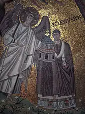 Klimt's father was a traveling artisan specializing in gold engravings, but Klimt's use of gold leaf in paintings was inspired by a trip he made to Italy in 1903. When he visited Ravenna he saw the Byzantine mosaics in the Church of San Vitale. For Klimt, the flatness of the mosaics and their lack of perspective and depth only enhanced their golden brilliance, and he started to make unprecedented use of gold and silver leaf in his own work.[10]