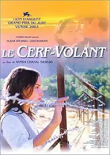 The Kite (French: Le Cerf-volant, Arabic: Tayyara men wara – طيّارة من ورق) is a 2003 Lebanese film by the director Randa Chahal Sabag. It tells the story of a fifteen-year-old Lebanese girl, from a Druze community, who is forced to marry her cousin across the Israeli border, but finds herself in love with an Israeli soldier. Le Cerf-volant was Sabag's most commercially and critically successful movie, and her last; she died in 2008.[1] The film was Lebanon's official submission for the Academy Award for Best Foreign Language Film at the 76th Academy Awards.[2] Although it never received a theatrical release in the United States, the film was released to DVD in 2009 by First Run Features.[3]