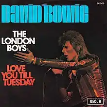 "The London Boys" is a song by English musician David Bowie. It was first released as the B-side of the single "Rubber Band" in the United Kingdom on 2 December 1966. It was originally written and demoed in 1965 with the Lower Third for potential release as the artist's debut single for Pye Records but it was rejected. After a year of rewrites, he recorded a new version with a new band, the Buzz, which helped secure him a record contract with Decca-subsidiary Deram Records. Unlike the A-side, "The London Boys" retains the Mod feel of Bowie's previous singles. The dark lyrics concern a 17-year-old who leaves home for London and becomes embroiled in the Mod scene (the "London Boys" of the title), turning to pills to fit in.[1] Like his previous singles, it failed to chart. Decca later issued it as an A-side in 1975..