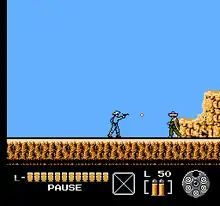 The Ranger's main weapon is a six-round revolver which can be loaded with standard or silver bullets (which cost twice as much, but have twice the firepower and can cut through targets). TNT sticks and even the Ranger's own fists can be used as weapons as well in the side-scrolling and top-down segments. The player can also obtain money bags and heart icons from defeated enemies to increase their cash and replenish their health respectively. If the player loses all of their energy the game will be over and the player must restart at the beginning of the Area. After completing an Area, Tonto will provide the player with a password which can be used to continue where the player has left off.[5][6]