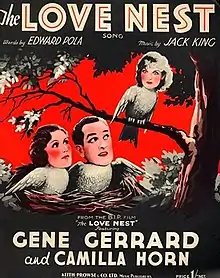 The Love Nest is a 1933 British comedy film directed by Thomas Bentley starring Gene Gerrard, Camilla Horn, and Nancy Burne.[1]