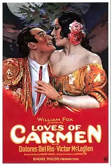 The Loves of Carmen is a 1927 American silent romantic drama film directed by Raoul Walsh. The film, based on the novella Carmen by Prosper Mérimée, stars Dolores del Río in the title role, and Don Alvarado as Jose.[1]