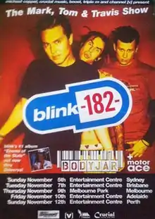 The Mark, Tom and Travis Show Tour was a concert tour by rock band Blink-182. Launched in support of the group's 1999 album Enema of the State, the tour visited amphitheatres and arenas between the summer of 2000 and spring of 2001. The tour was considered "one of the most anticipated rock tours of the season", and was supported by Bad Religion and Fenix TX, and from Bodyjar on the Australian and New Zealand leg of the tour.[3]
