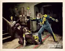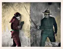 The Mark of Zorro is a 1920 American silent Western romance film starring Douglas Fairbanks and Noah Beery. This genre-defining swashbuckler adventure was the first movie version of The Mark of Zorro. Based on the 1919 story The Curse of Capistrano by Johnston McCulley, which introduced the masked hero, Zorro, the screenplay was adapted by Fairbanks (as "Elton Thomas") and Eugene Miller.