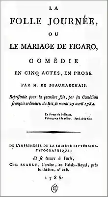 ![]() Title page from the first edition of The Marriage of Figaro | |