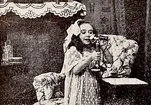 Identifying cast members in early Biograph releases such as The Medicine Bottle is made more difficult by the fact that the studio, as a matter of company policy, did not begin publicly crediting its performers on screen, in trade publications, or in newspaper advertisements until years after this short's release. All the players in this short were not credited in their roles on screen and in print, as were the rest of Biograph's relatively small staff of "photoplayers" and crew members in other productions in 1909.[12][13] At the time of this thriller's release, Lawrence was already gaining widespread celebrity among filmgoers. Few people, though, outside the motion picture industry knew her name, so in 1909 and for the remainder of her time working at Biograph, the actress was referred to by admirers and in news articles in the media simply as "the Biograph girl".[13] Publicly, the studio would not reveal the names of its actors or credit them on screen and in film promotions until 1913.[14]