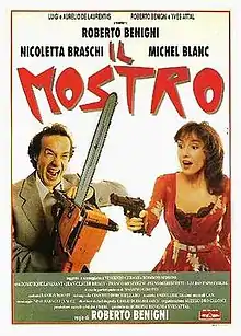 The Monster (Italian: Il mostro) is a 1994 Italian-French comedy film, starring Roberto Benigni as a man who is mistaken by police profilers for a serial killer due to a misunderstanding of the man's strange behavior. This film was, at the time it came out, the highest-grossing film in Italy, bested later by another Benigni film, Life is Beautiful.