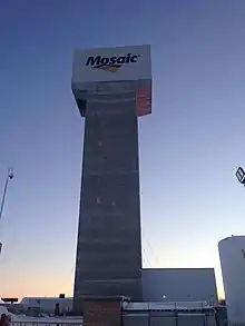 Mosaic has approximately 10.4 million tonnes of operational potash capacity.[6] Mosaic currently owns potash mines or surface mills at; Belle Plaine, Colonsay, Esterhazy K1, Esterhazy K2, Esterhazy K3 and Carlsbad, with another potash mine recently purchased in Brazil during the Vale Fertilizantes acquisition. Colonsay mine and mill has been indefinitely idled and is currently in care and maintenance mode. Esterhazy K3, currently in development, consists of an underground mine and service/production shafts separate from the K1 and K2 underground mine that is beginning to supply the K1 and K2 surface facilities with ore.[7] Esterhazy K3 does not have surface milling and storage facilities, instead it is intended to replace the ore currently mined from the K1 and K2 mine. This shift in production will decrease brine management costs of the K1 and K2 mine, which stood at $108.0 million for 2020.