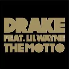 "The Motto" is a song by Canadian rapper Drake featuring American rapper Lil Wayne. It is a digital iTunes Store bonus track from Drake's second studio album Take Care. "The Motto" premiered on Power 106 on October 31, 2011.[1] Drake released the song on his OVO blog a day later.[2] It was first played on rhythmic top 40 radio stations on November 29, 2011 as the album's fourth single.[3]